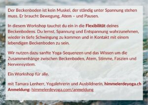 In diesem Workshop tauchst du ein in die Flexibilität deines Beckenbodens. Du lernst, Spannung und Entspannung wahrzunehmen, wieder in tiefe Schwingung zu kommen und in Kontakt mit einem lebendigen Beckenboden zu sein.